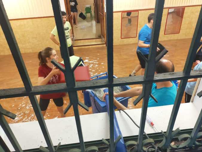 Unas cuatro horas después se consiguió achicar el agua y limpiar, en la medida de lo posible, lo suelos y objetos. Aún quedaban tareas de limpieza, muchas, pero lo importante es que el Club y Centro Juvenil se habían salvado…y lo habían salvado los propios jóvenes.