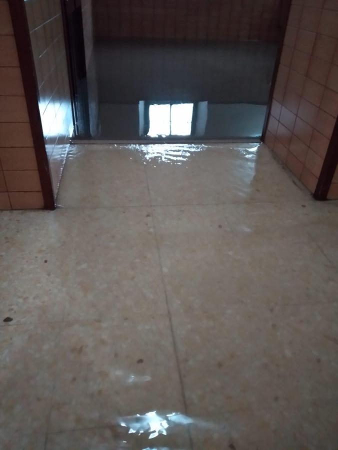 Fuera llovía mucho. De pronto una arqueta del pasillo saltó por los aires y litros y litros de agua –cientos- empezaron a entrar violenta y rápidamente y se extendían por todas las estancias. Todos los jóvenes se incorporaron, cogieron fregonas, escobas, cubos y comenzaron a achicar agua. Levantaron todo lo que había en el suelo, focos, cables, trajes, decorados…del Musical representado justo una semana antes. No se daba abasto…las fregonas ya no servían; con vasos sacaban agua vertiginosamente y la echaban en cubos que se llenaban en segundos … cubos y cubos de agua eran vertidos al exterior… pero el agua seguía entrando y llegaba ya al almacén donde se guarda todos los aparatos electrónicos.