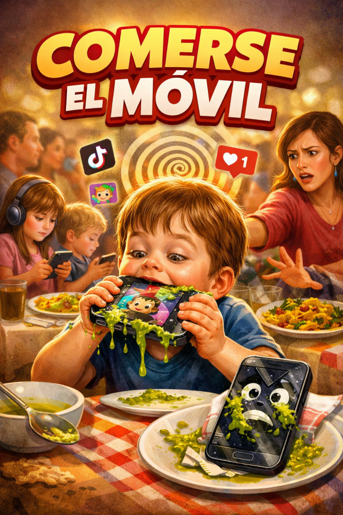 Nos habíamos sentado a comer un colectivo numeroso, unas 60 personas. La paella preparada iba a hacer las delicias de todos los asistentes. Me senté junto a un grupo de unos jóvenes y adultos. Al lado de los mayores se sentaban tres criaturas de entre 3 y 7 u 8 años. Cada uno de ellos estaba absorto a una pantalla de la que salía dibujos animados, tiktoks y otras lindezas que controlaban con el dedo índice haciendo subir y bajar las imágenes de una manera vertiginosa. Sus madres, como en una letanía mística les iban repitiendo “deja el móvil y come”, pero los niños no escuchaban, seguían absortos, ajenos a todo, viendo las imágenes.
