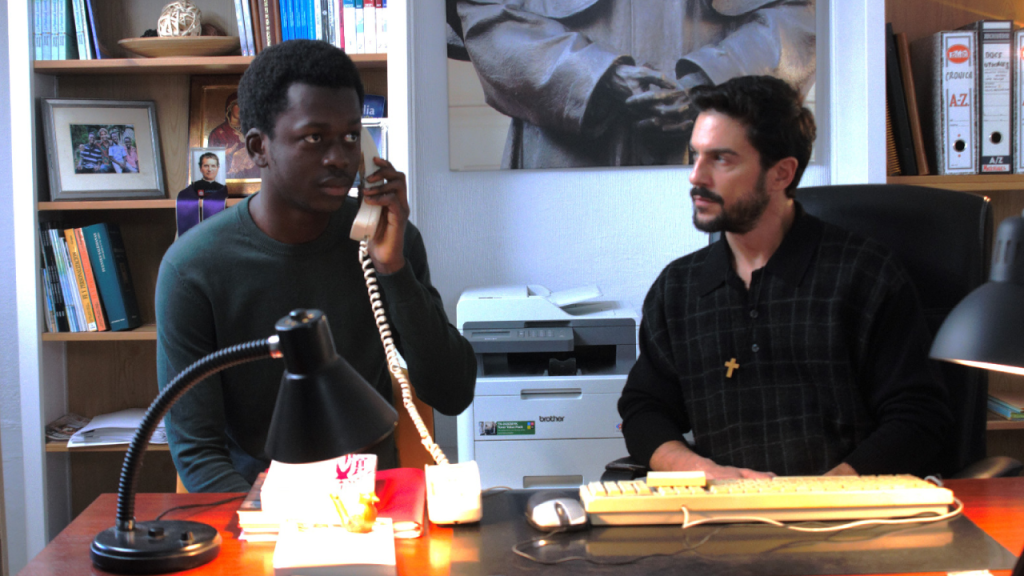 - En otro momento del film, el policía corrupto que quiere extorsionar a los salesianos le da el pésame al padre Alfonso por la muerte de su superior, le pregunta qué va a hacer ahora que se queda solo. El sacerdote le responde que no está solo, hay con él otro hermano de comunidad, tiene a su Congregación, al Obispado y a todos esos jóvenes que conviven en la misión.